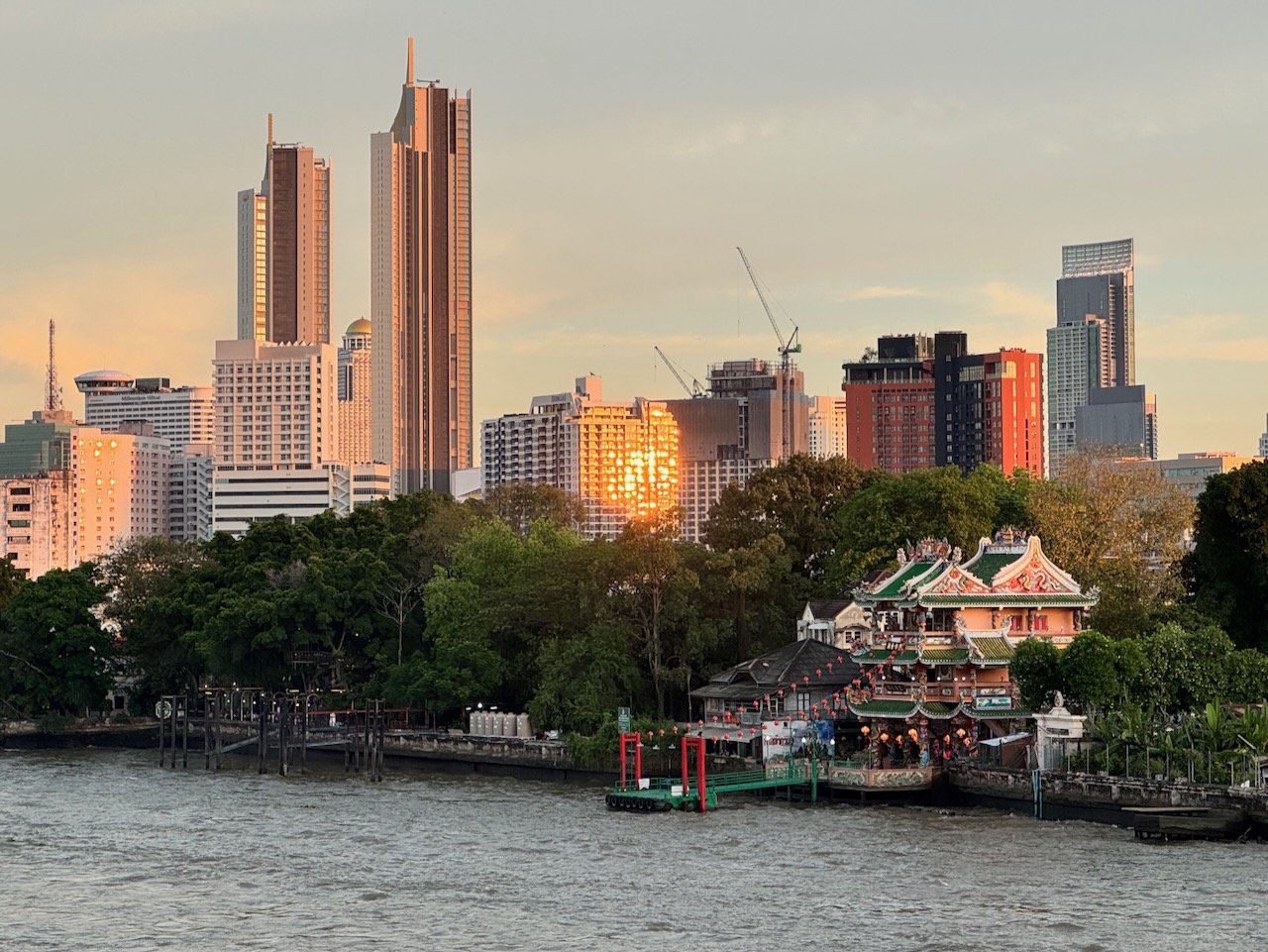 • Architecture & Views: The complex features a three-level riverside tower with traditional Chinese-style roofs, dragon pillars, and intricate carvings. Visitors can climb to the top for panoramic views of the Chao Phraya River and the Phra Pok Klao Bridge.